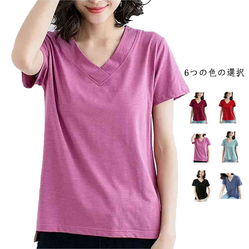 サマートップス インナーシャツ カットソー 半袖 トップス vネックトップス 夏 無地 シンプルレディースファッション トップス シャツ ブラウス