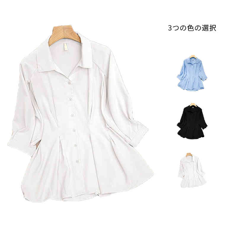 ロングシャツ 春夏秋 フレアシャツ トップス ロング丈 プリーツシャツ フォーマルシャツ フォーマルトップス