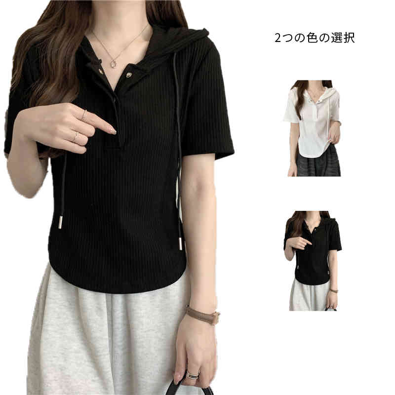 半袖 サマートップス フード付きブラウス プルオーバー トップス 半袖tシャツ ショート丈レディースファッション トップス シャツ ブラウス