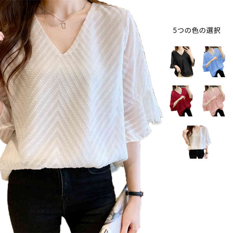 レディース vネック サマートップス シャツブラウス シフォンシャツ オシャレブラウス ブラウス 春夏秋 ゆったり