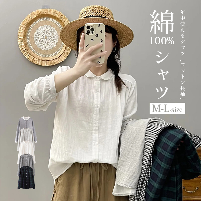 新作 レディース ガーゼ シャツ 長袖 肌触り優れる やさしいシャツ ダブルガーゼ 丸首 シンプル カジュアル コーデ