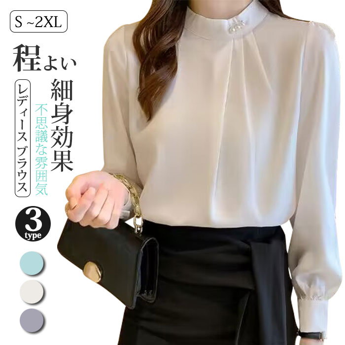 通気性が良い シャツ ブラウス レディース スーツ インナー 長袖オフィス ビジネス フォーマル 入学式 スーツ 清新感いっぱい スタンドカラー フリーサイズ