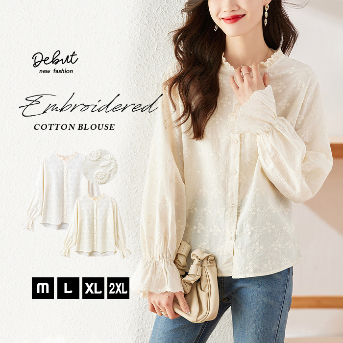 長袖 ブラウス 森ガールのナチュラルな風合い 程よいの長さは、様々なシーンで活躍できるアイテム 毎日着たくなる着心地の良い素材
