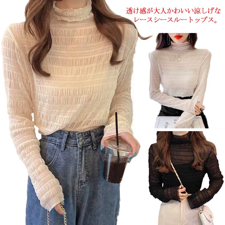 トップス ブラウス 立ち襟 ブラウス レース 長袖 ハイネック 花柄 レディース 韓国 ファッション