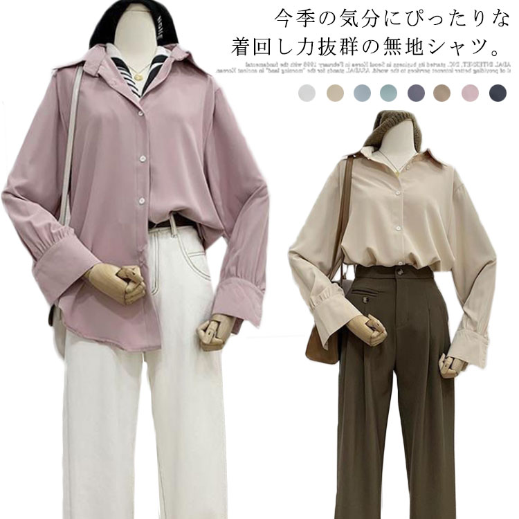 シャツ レディース 長袖 シャツ ブラウス ワイシャツ トップス カジュアル 女性用 無地 シャツ ジャケットインナー おしゃれ ゆったり ドレープ
