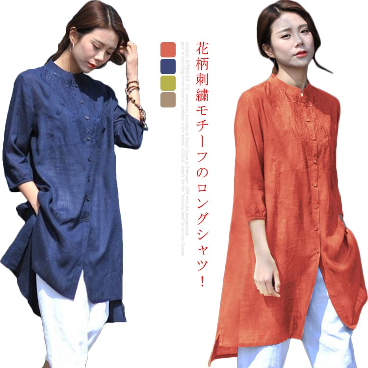 綿麻シャツ レディース シャツ シャツ ブラウス トップス 無地 ゆったり ナチュラル シンプル おしゃれ 立ち襟
