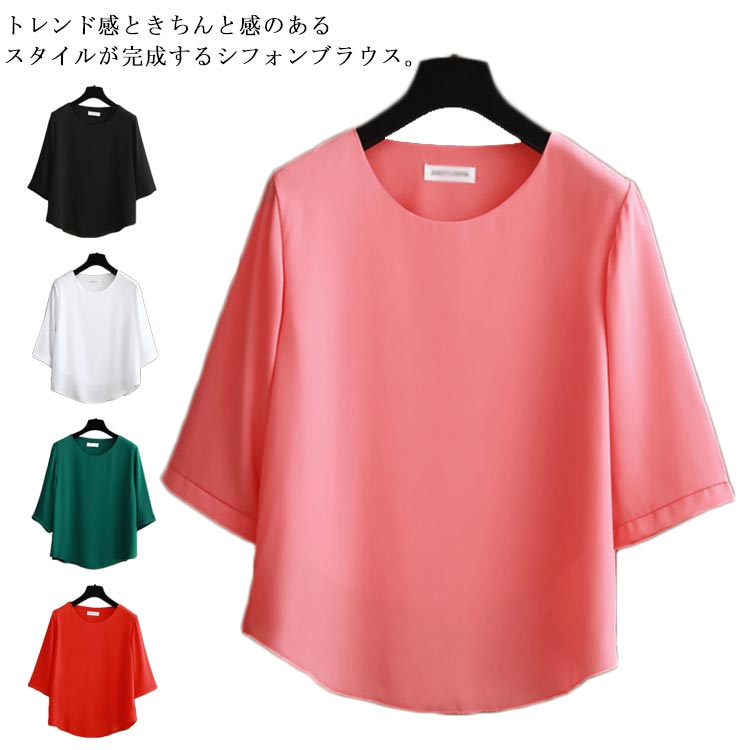 ブラウス レディース 半袖 シフォン トップス 長袖 キレイめ ネック ゆったり 体型カバー お洒落 無地 春秋物 通勤 フェミニン 大きいサイズ