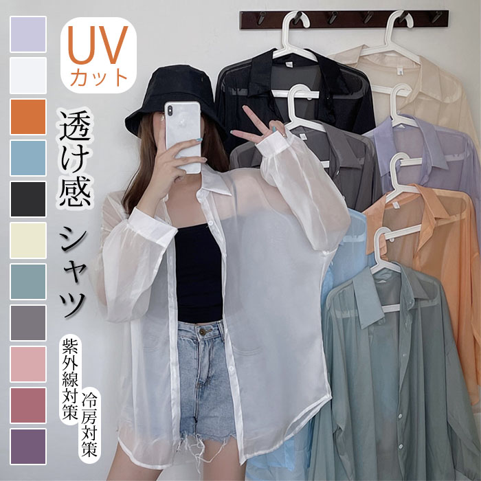 UV素材が強い日差し 紫外線から女性の肌をしっかりガード 程よい透け感が女性らしさを演出 シャツとしても羽織りとしても着て頂けるので これからの季節に重宝冷房対策 11色