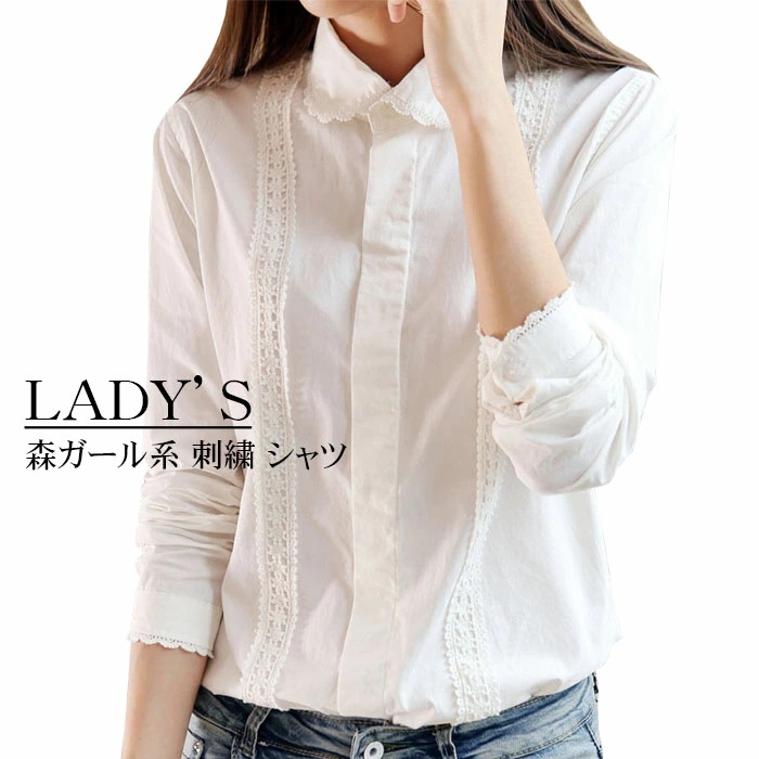 ブラウス 大人 レース 丸襟 シャツ ブラウス 生地は薄すぎず、涼しげ 一枚でおしゃれ オトナ可愛い 蝶結びリボン長袖ホワイトS M L