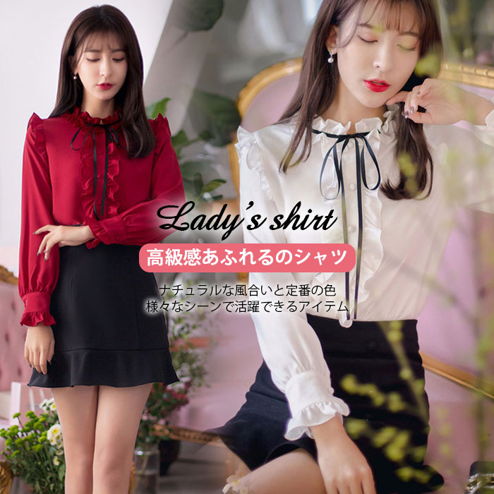 女性の魅力を最大限に引き出す フリル ブラウス レディース シャツ ブラウス 無地 トップス ブラウス 快適着心地 シンプル 大き結び 通勤 OL お出かけ 日常 フォーマル