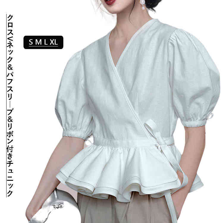 トップス レディース チュニック ブラウス フレア フリル パフスリーブ パフ袖レディースファッション トップス シャツ ブラウス