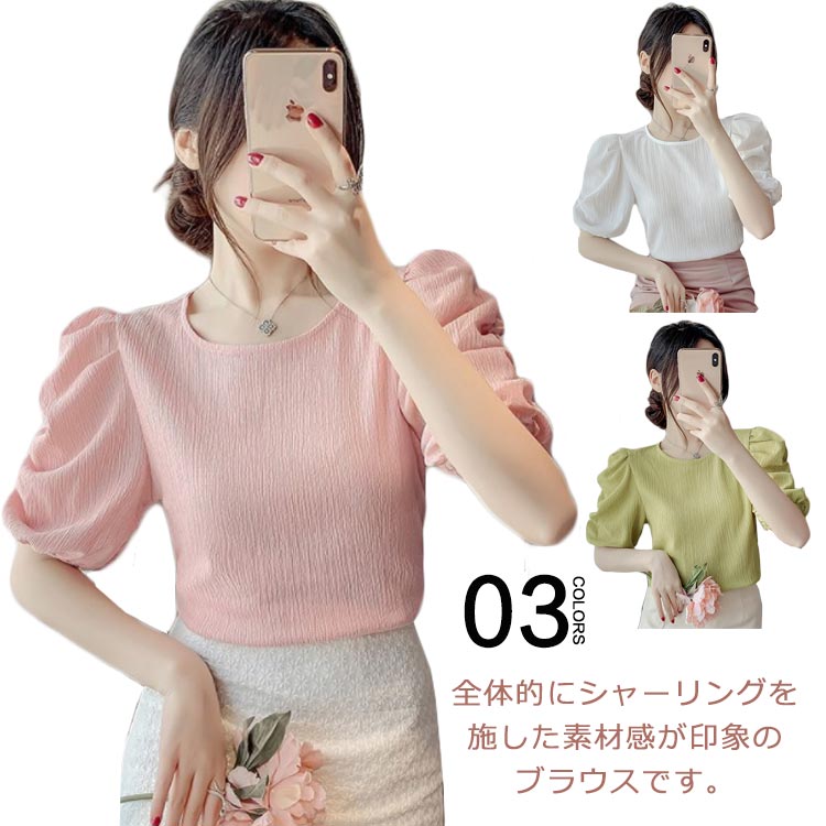 ブラウス レディース 開襟シャツ 半袖 ボリューム袖 OL カジュアルレディースファッション トップス シャツ ブラウス