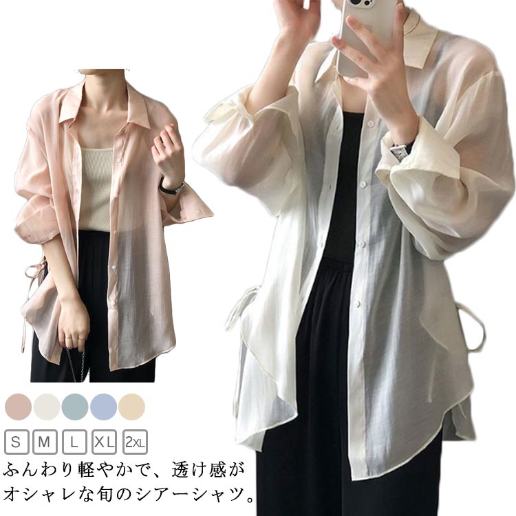 シアーシャツ ビッグシルエット シアートップス シースルー 透け感 オーバーシャツ 二の腕カバー 冷房対策 シャツブラウス