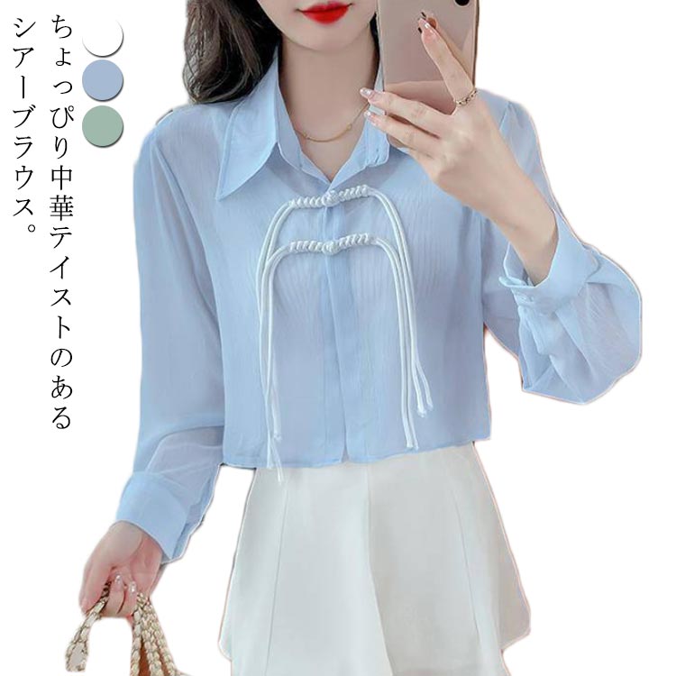 トレンド感溢れるチャイナ風シアーブラウス♪ ショートシャツ ボレロ ボレロレディースファッション トップス シャツ ブラウス