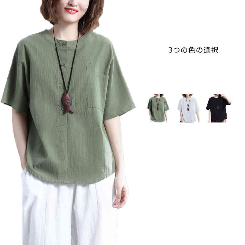 レディース ブラウス 春夏 大きサイズ 切り替え 綿麻 リネンブラウス 春夏レディースファッション トップス シャツ ブラウス