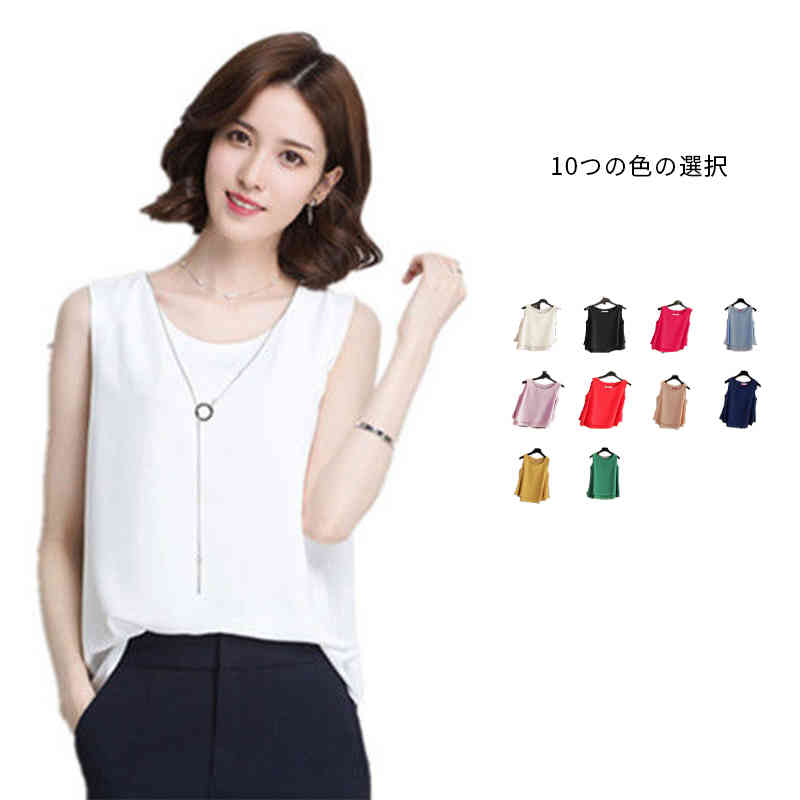 インナー ノースリーブ レディース ブラウス ラウンドネック タンクトップ ビジネス 着瘦せ 揺れる シャツ
