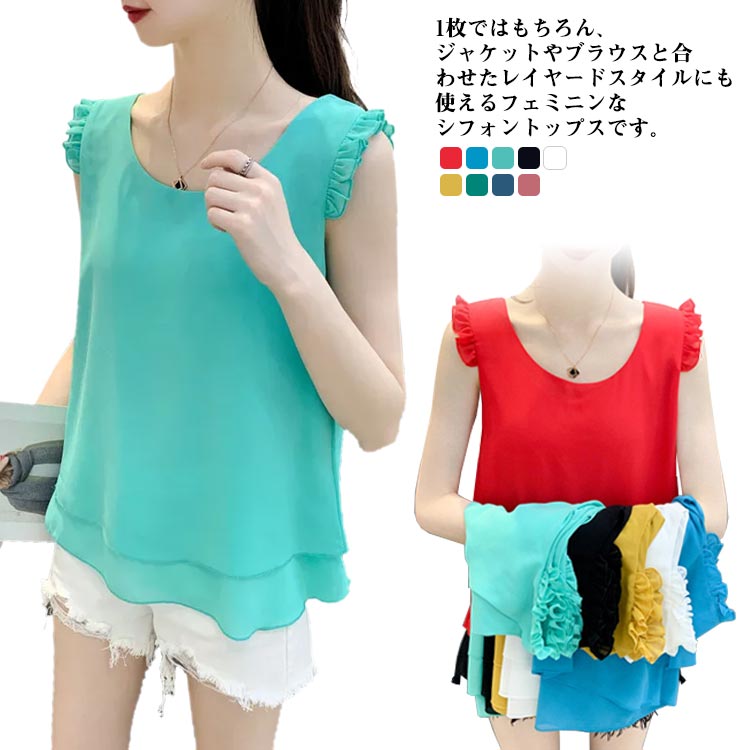 ノースリーブ 重ね風ブラウス レディース 春夏 シフォン トップス ゆったり 大きサイズ タンクレディースファッション トップス シャツ ブラウス