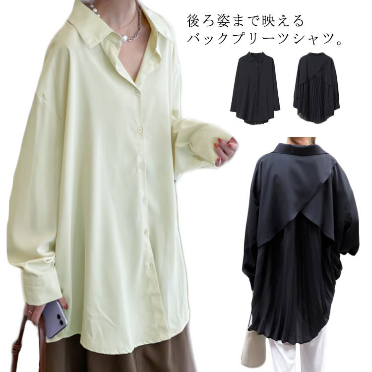バックプリーツシャツ レディース 長袖 ロング ブラウス ゆったり 前後差レディースファッション トップス シャツ ブラウス