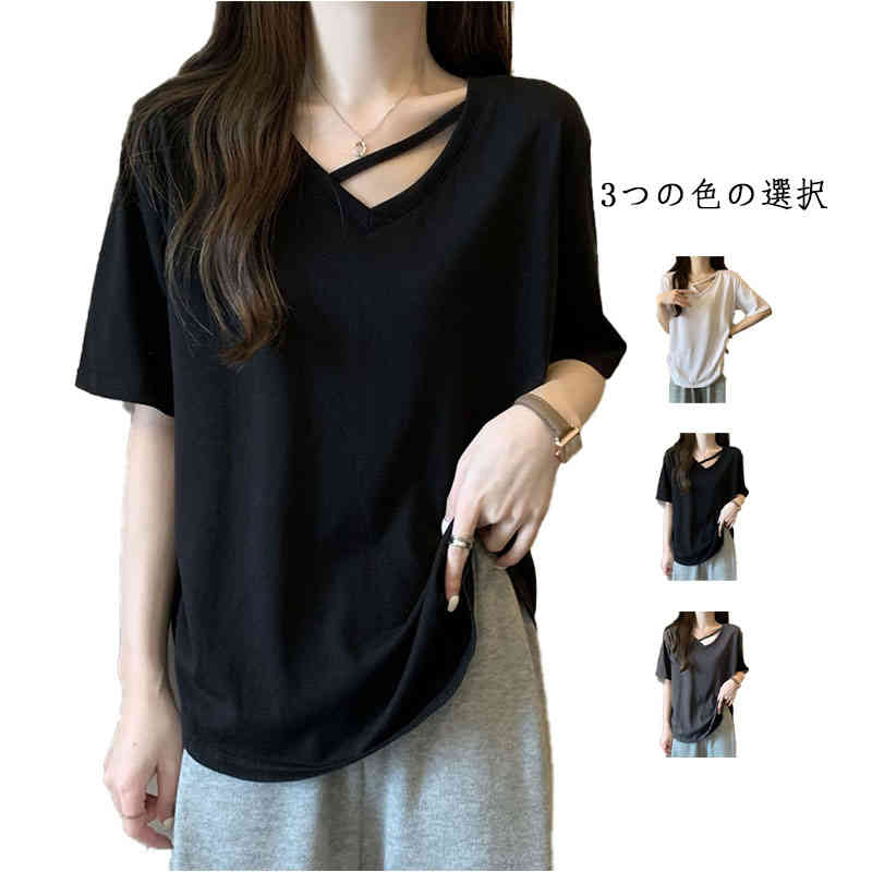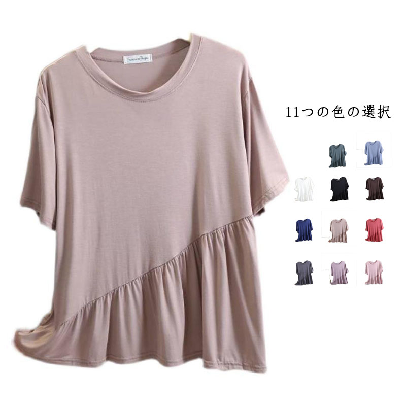 ゆったり トップス シャツブラウス プルオーバー デザイン フェミニン かわいい 半袖シャツ 無地 シンプル