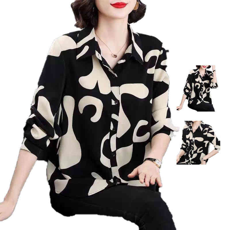 オシャレブラウス シフォンシャツ 長袖トップス カジュアルブラウス インナーブラウス プリントシャツ おしゃれ
