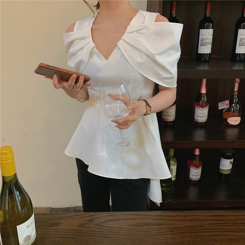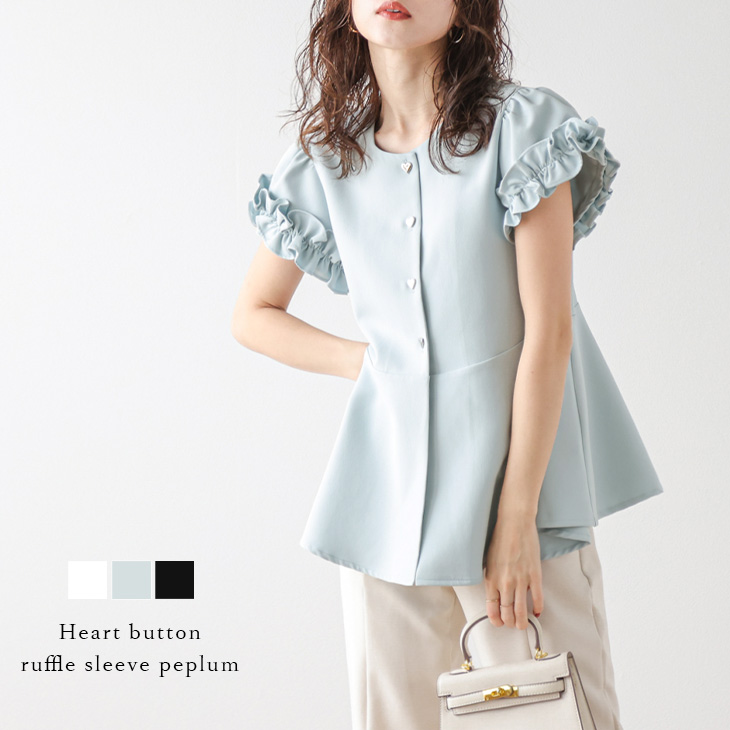 ハートボタン フリルスリーブ ペプラム フレンチスリーブ トップス 体型カバー 半袖 トップスレディースファッション トップス シャツ ブラウス