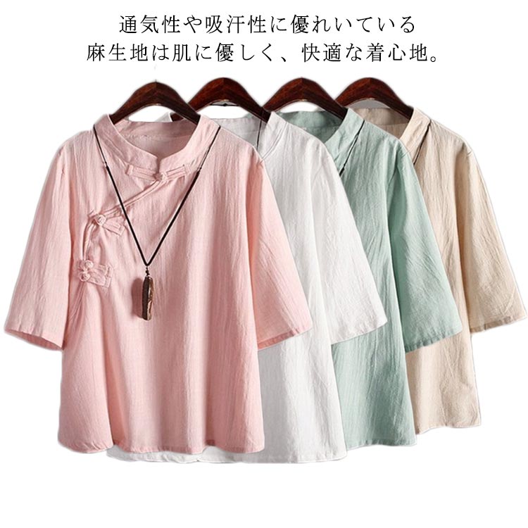 ブラウス ナチュラル レディース 前開き チャイナ風 ブラウスレディースファッション トップス シャツ ブラウス