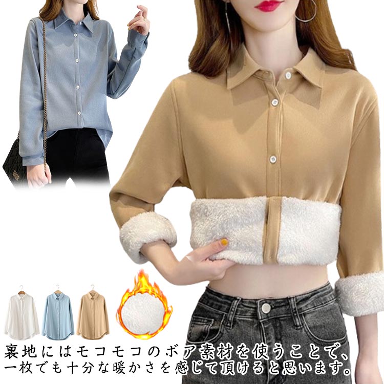 ワイシャツ ブラウス レディース 秋冬 裏起毛 長袖シャツ スリム 長袖 トップス 白シャツ 裏起毛シャツ 無地 フォーマル ブラック ホワイト 白 黒 オフィス 暖かい 秋 冬 OL