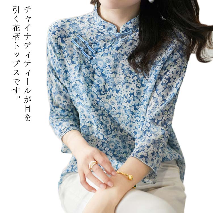チャイナ風 ブラウス レディース 総柄 花柄 チャイナ服 チャイナシャツ プルオーバーレディースファッション トップス シャツ ブラウス