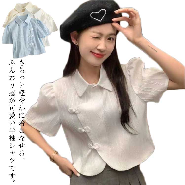 チャイナボタン レディース チャイナ風 トップス チャイナシャツ ブラウス シャツブラウス 40代 前開き 体型カバー 半袖 春物 夏服 ホワイト ベージュ ブルー 薄手 きれいめ ゆったり 20代