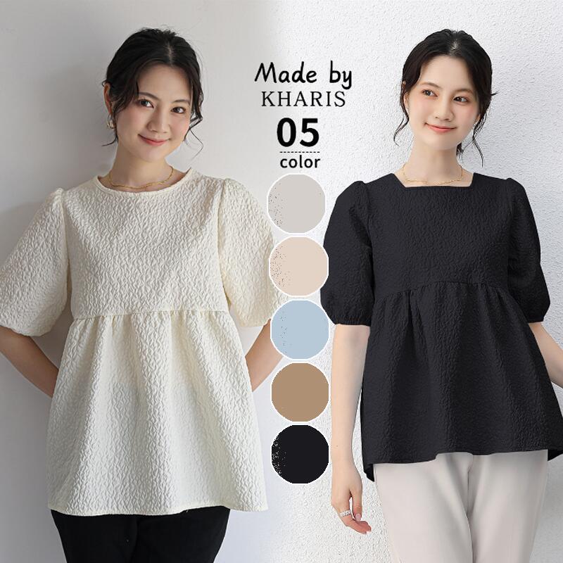 ジャガードブラウス エンボス加工 Aライン 半袖 バックリボン トップス レディース おすすめ♪レディースファッション トップス シャツ ブラウス