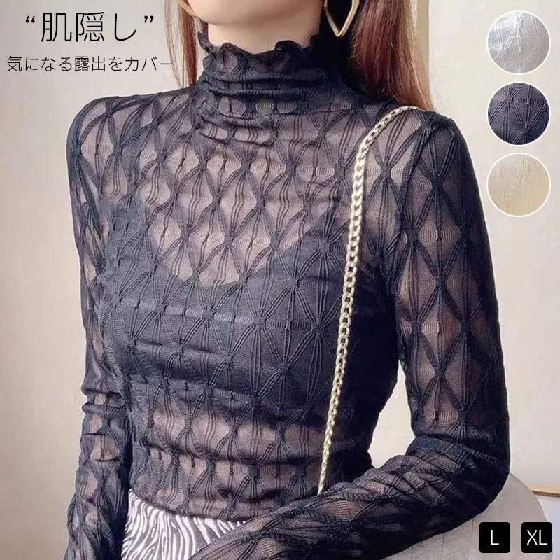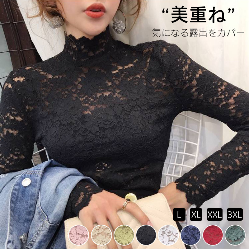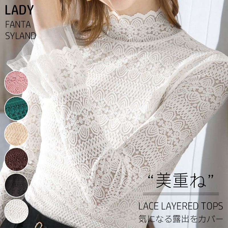 肌隠し気になる露出をカバー トップス シアー シースルー レディース レース レーストップス レイヤードトップス ブラウス ハイネッ 長袖 重ね着 きれいめ 花