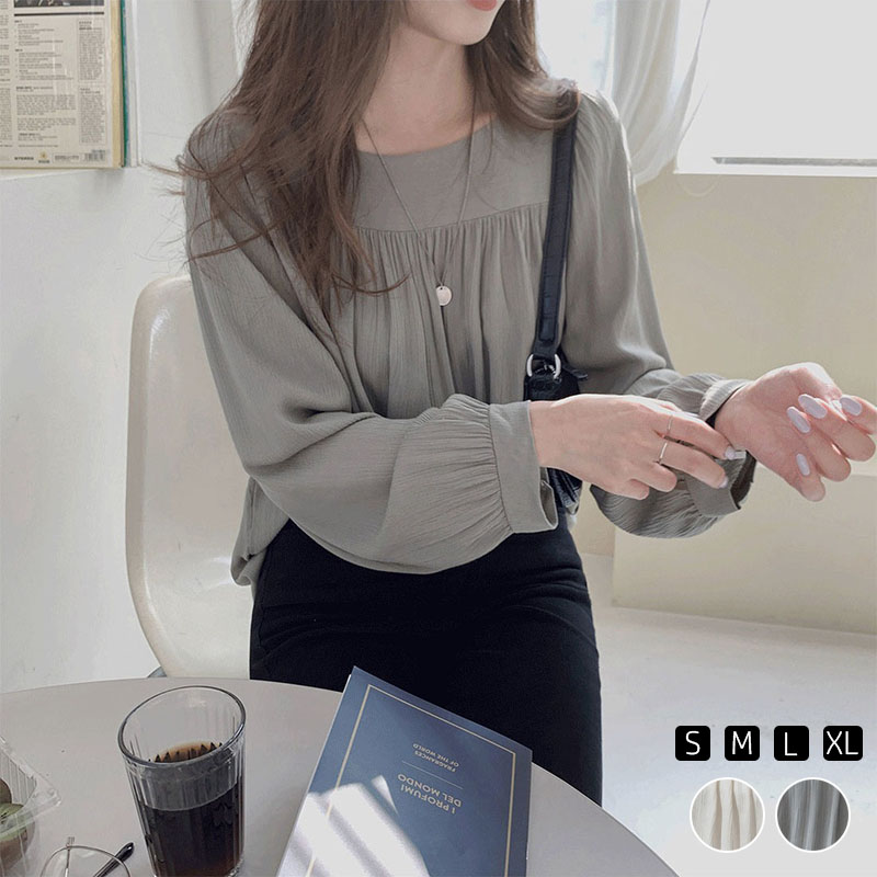 レディース シャツ ブラウス 長袖 キーネックブラウス タック入り ギャザー ヘム丈 ゆったり♪レディースファッション トップス シャツ ブラウス