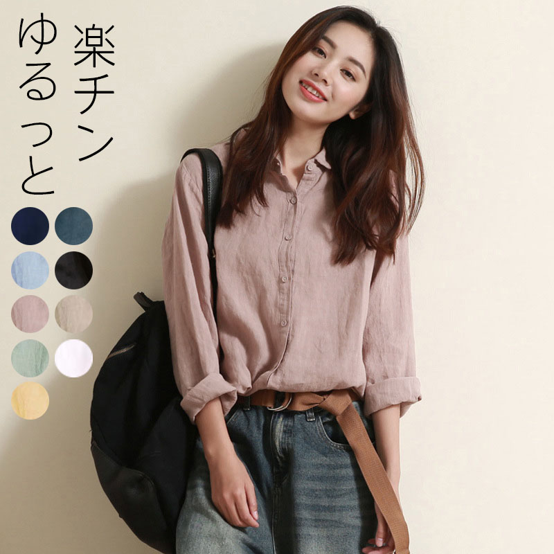 シャツ ブラウス カットソー 夏春秋 長袖リネン混 無地 通勤♪レディースファッション トップス シャツ ブラウス