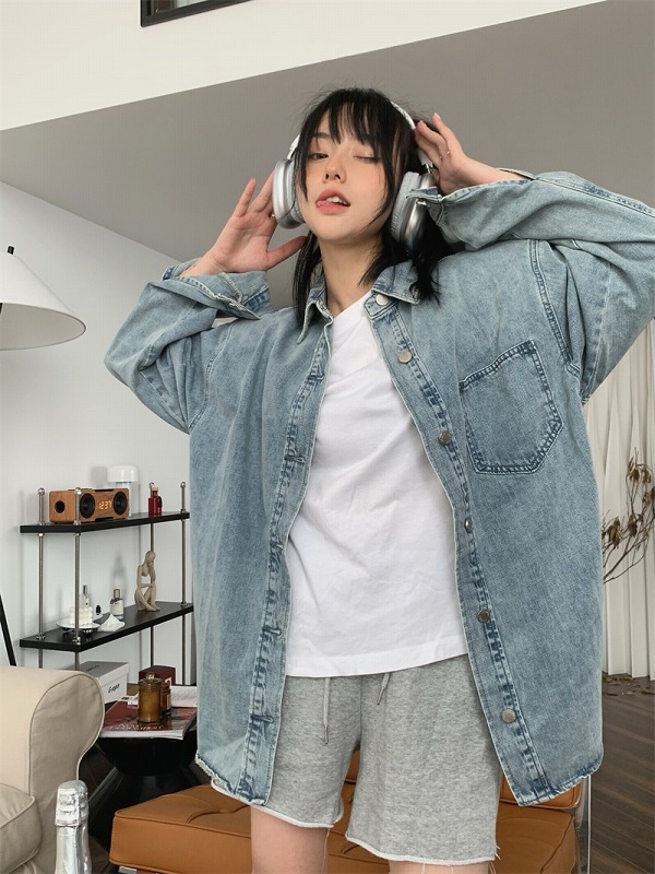 ブラウス シャツ 長袖 切り替え 体型カバー デニム LOGO ロゴ 英字 原宿系ファッション 韓国風 ダンス衣装 POP カワ 個性 奇抜 かわいい 青文字系 トップス レディース 女