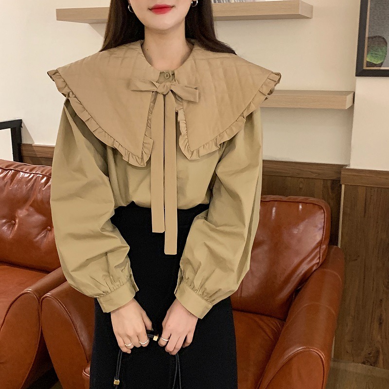 ブラウス シャツ 長袖 切り替え バイカラー 配色 体型カバー ヴィンテージ風 レトロ調 原宿系ファッション 韓国風 ダンス衣装 カワ 個性 奇抜 かわいい 青文字系 トップス レディース 女