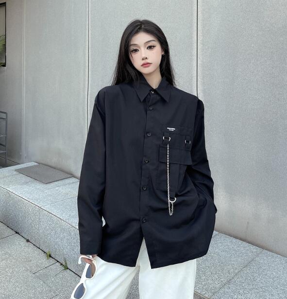 モード系シャツ 長袖 チェーン ビッグシルエット ゆめかわいい 奇抜 派手前開き トップス ダンス 衣装 ヒップホップ コスチューム 韓国ファッション 大きいサイズ 個性的 服 原宿系オーバーサイズ