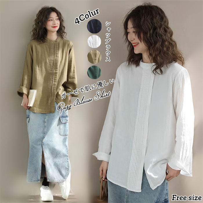 全7色 2重ガーゼ シャツ 綿100% ガーゼシャツ ダブルガーゼ ブラウス コットン シャツブラウス レディース 秋