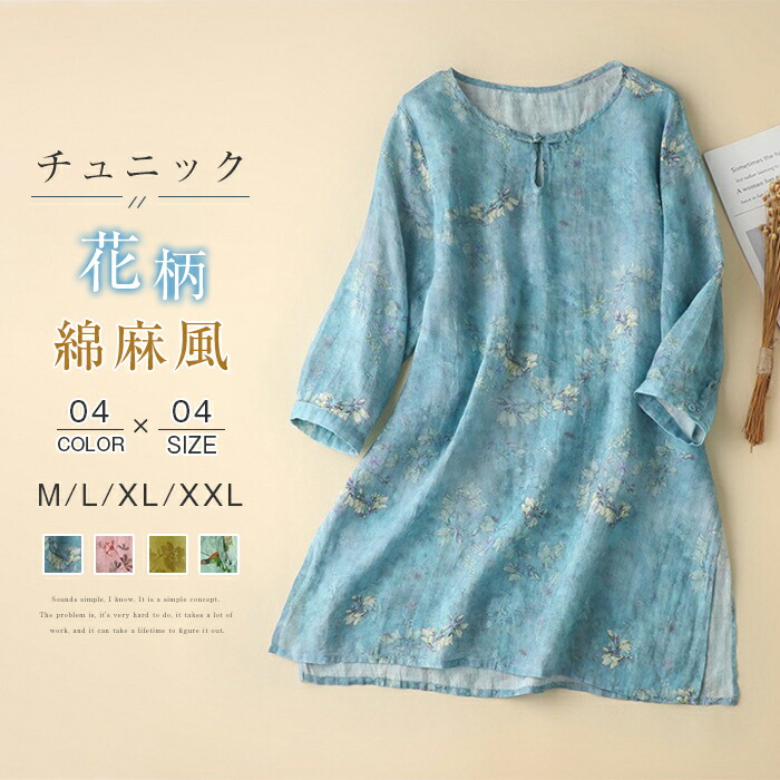 ブラウス トップス チュニックレディース 半袖 綿麻 夏 花柄レディースファッション トップス シャツ ブラウス