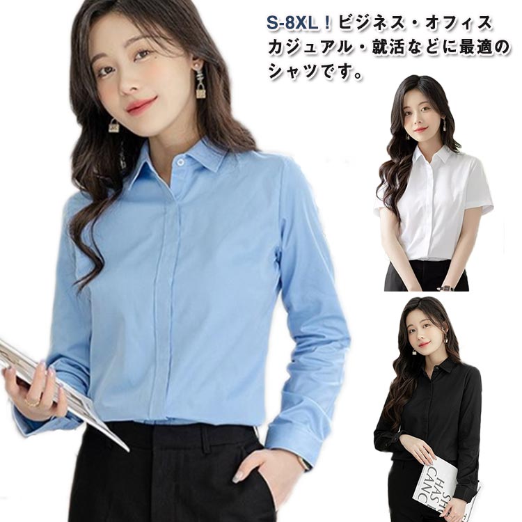 Yシャツ 薄手 通勤、オフィス、就活…単品としてもスーツインナーにも OLさん、学生さんにお勧め定番レギュラーネックシャツ 就活 ホワイト シンプル 着痩せ おしゃれ