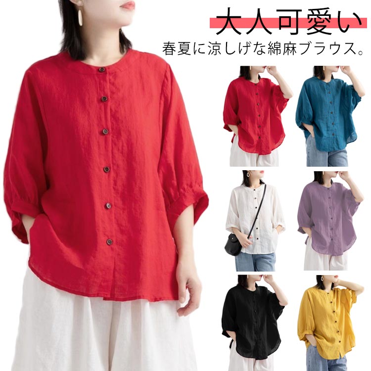 シャツ ブラウス シャツブラウス 綿麻ブラウス コットンリネンシャツ 綿麻風 カジュアル トップス ゆったり