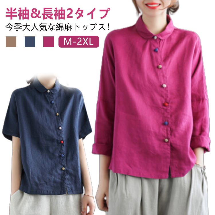 コットンリネン シャツ 半袖 長袖 レディース カジュアルシャツ ブラウス ゆるシャツ 夏ブラウス 秋シャツ 半袖シャツ 長袖シャツ レディースシャツ 大人 森ガール 綿シャツ 大人シャツ