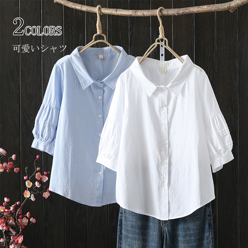 薄手 夏シャツ 無地 カジュアル かわいい 少女感 シャツブラウスレディースファッション トップス シャツ ブラウス