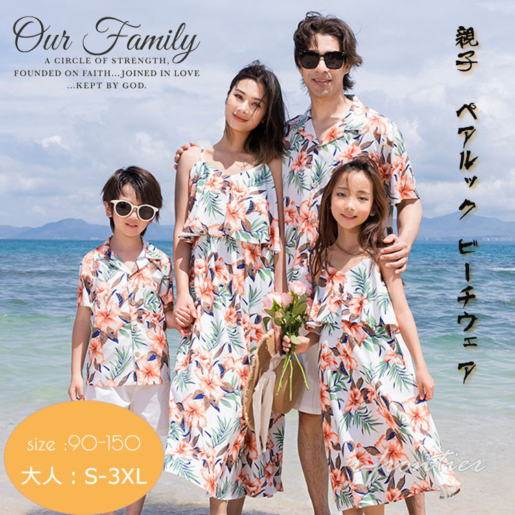 海へ旅行の大活躍 ペアルック ワンピース シャツ 夏服 ママと娘 パパと息子 親子 ポへミア お出かけ 恋人 カップル 普段着 ご家族旅行