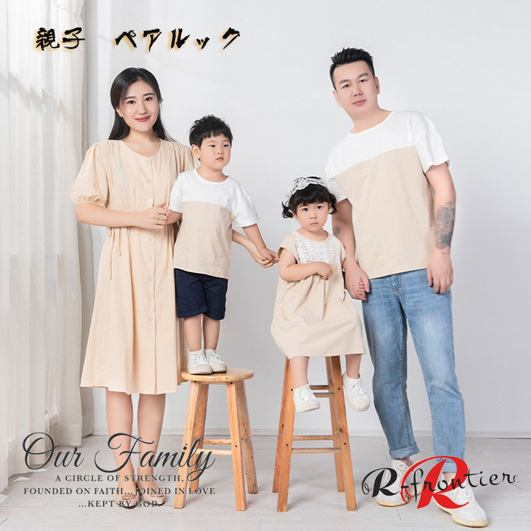 リンクコーデ 親子 セット 親子 ペアルック 親子コーデ 親子 ペアtシャツ 親子 パパ ペア tシャツ ワンピース 親子ワンピース ベージュ 半袖 2枚