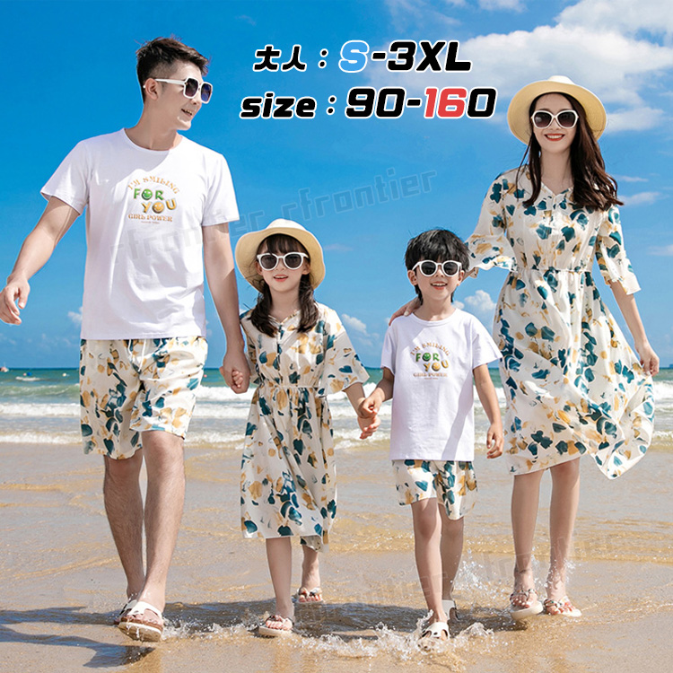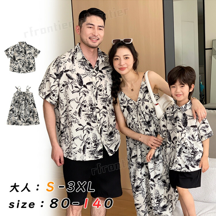 親子ペアルック シャツ 柄シャツ 夏服 ママと娘 親コーデ ワンピース パパと息子 親子 お出かけ 恋人 カップル 普段着 ご家族旅行