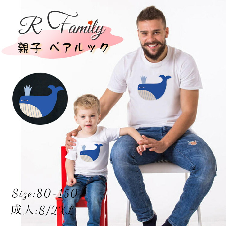 親子 ペアルック 赤ちゃん 女の子 夏 リンクコーデ セット 鯨柄 可愛い ベビー 半袖 家族 お揃い tシャツ パパ 親子 ペア tシャツ 彼女 誕生日 プレゼント 彼氏 親子服 ママ