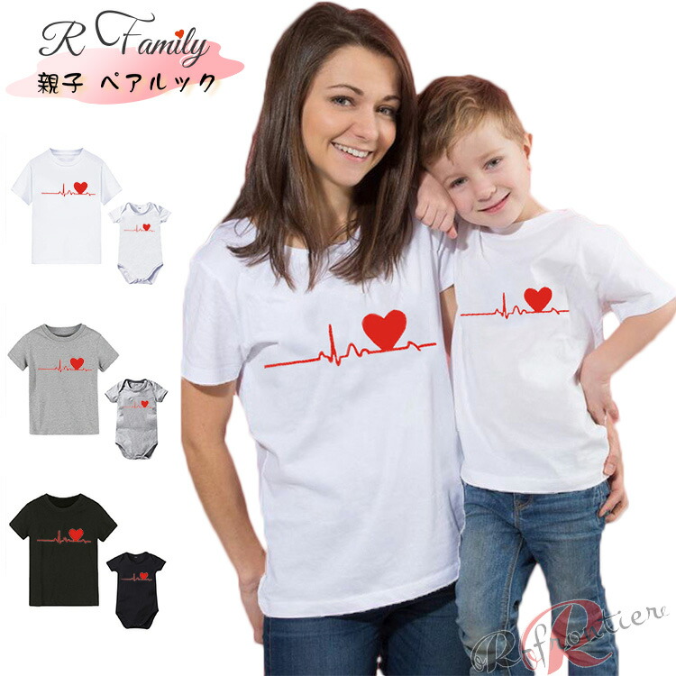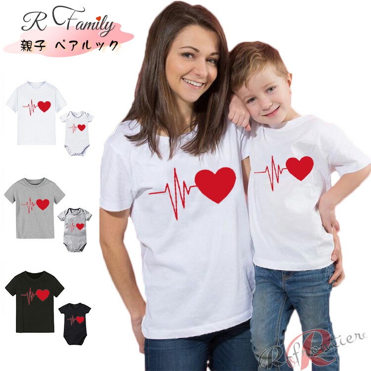 リンクコーデ 親子 セット シャツ 兄弟 ハート 心音 姉妹 親子ペアルック 男女兼用 半袖 可愛い 親子 家族 おそろい ペアルック 娘 息子 兄弟 誕生日 母の日 プレゼント