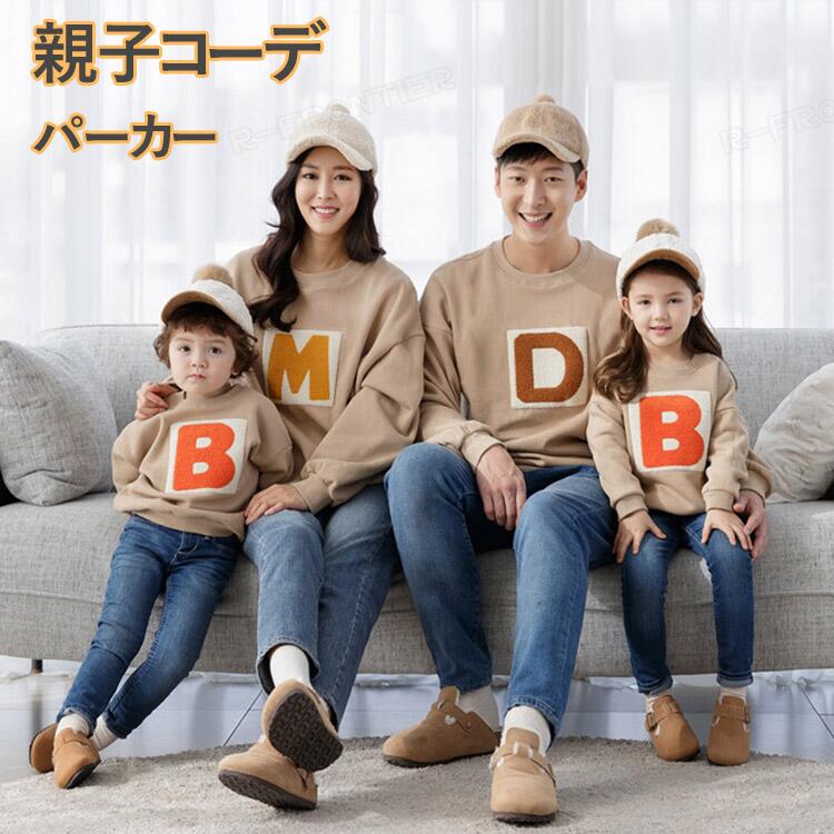 リンクコーデ 親子 カップル ペアルック tシャツ 親子 パーカー 子供服 春 長袖 ママ パパ トップス 韓国 お揃い カップル 親子コーデ 記念日 コーデ 可愛い