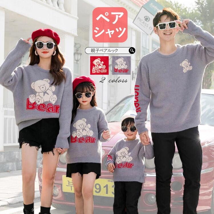 リンクコーデ 親子 親子コーデ パパ セーター 熊 ボア 親子お揃い 男女 カップル 長袖 可愛い 家族 おそろい 親子ペア ペアルック 親子 ママ 娘 パパ 息子 韓国