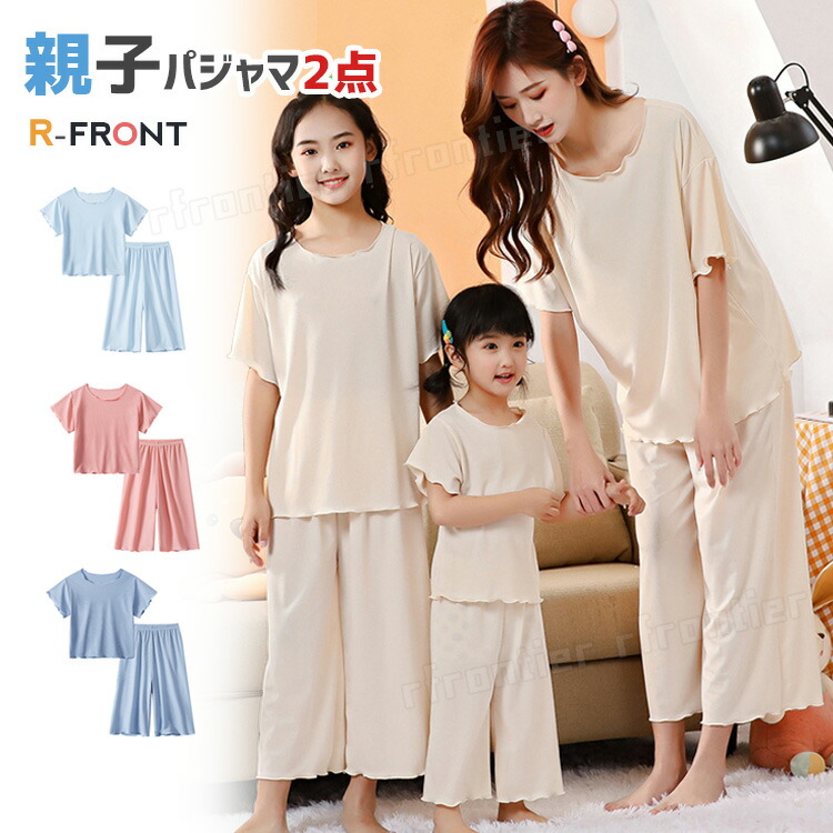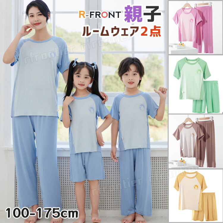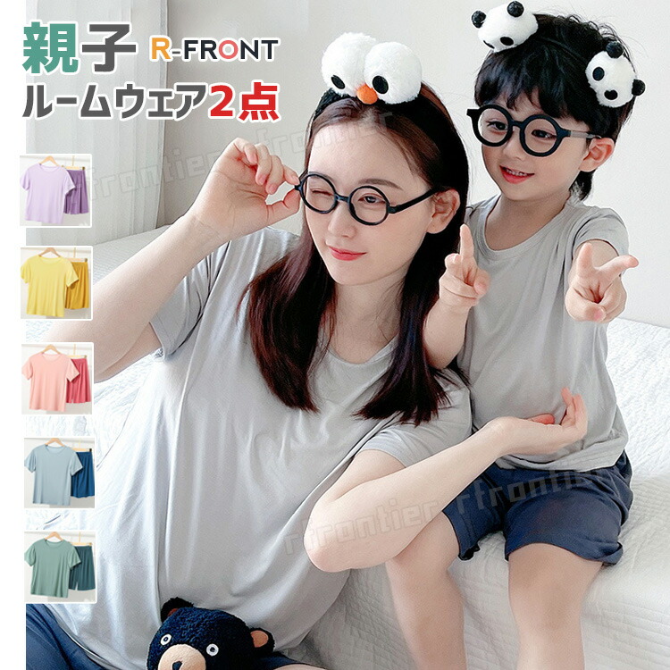 親子ルームウェア 2点セット パジャマ 無地 親子 ペアルック 半袖 トップス 半パンツ 親子お揃い 親子コーデ ママと娘 ハハ 娘 姉妹お揃い 家族で パパ